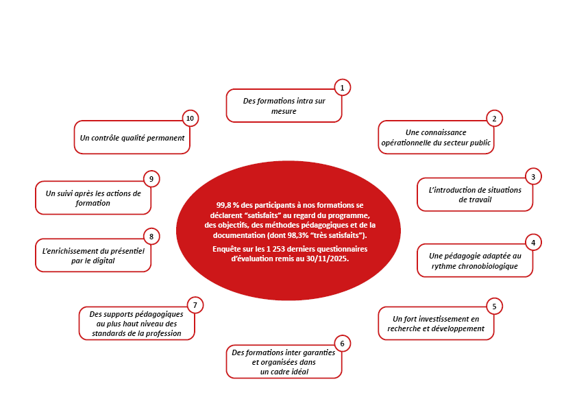2. Une connaissance opérationnelle du secteur public, soutenue par les responsabilités professionnelles que nos intervenants ont occupées dans les organisations publiques et leur expérience affirmée du conseil. Cette connaissance nous permet d’illustrer en permanence nos formations par des exemples, des mises en situation et des cas pratiques opérationnels.